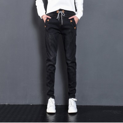 松紧腰高腰牛仔裤女式春秋韩式紧身裤宽松修身裤2021新款哈兰长裤